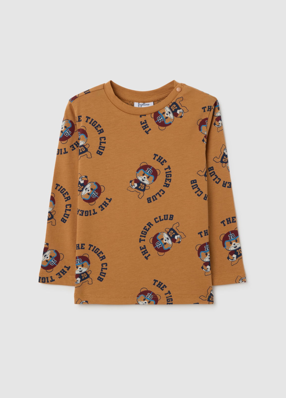Характеристики: Коричневая хлопковая футболка для малышей 9–36 месяцев из линии Fagottino обеспечивает комфорт и тепло. Коричневый цвет и обычный крой делают ее идеальной для малышей. Футболка украшена забавным принтом Tiger Club.