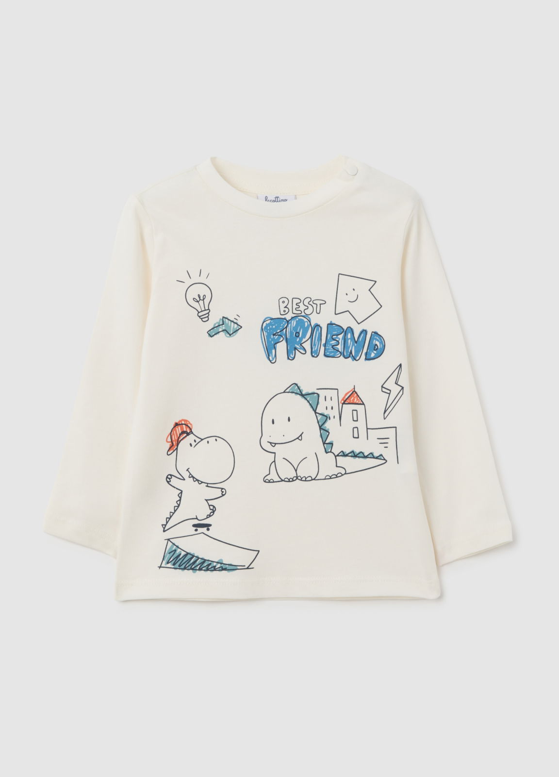 Характеристики: Этот лонгслив из линии Fagottino подходит для детей от 9 до 36 месяцев и выполнен из чистого хлопка. Украшен веселым принтом с динозавром, имеет круглый вырез и удобные пуговицы на плече для легкого переодевания. Посадка — стандартная, что обеспечивает комфорт и качество, делая эту вещь идеальным вариантом для повседневной носки.