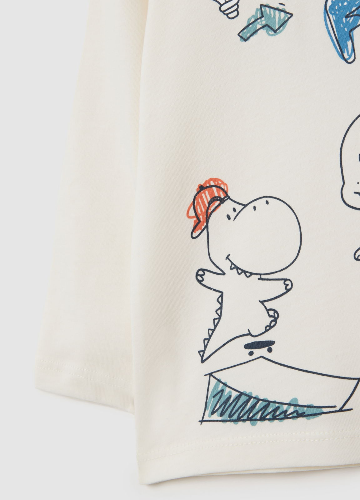 Тип продукта: Детская белая футболка из чистого хлопка прямого кроя с динозаврами