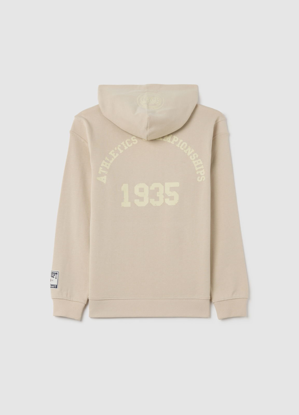 Характеристики: это бежевое худи из линии OVS Kids предназначен для мальчиков от 10 до 15 лет, изготовлено из чистого хлопка. эта модель идеальна для прохладных дней благодаря практичному и комфортному дизайну. свитшот украшен выразительным числовым принтом и передним карманом‑кенгуру, идеально подходит для хранения мелких предметов.