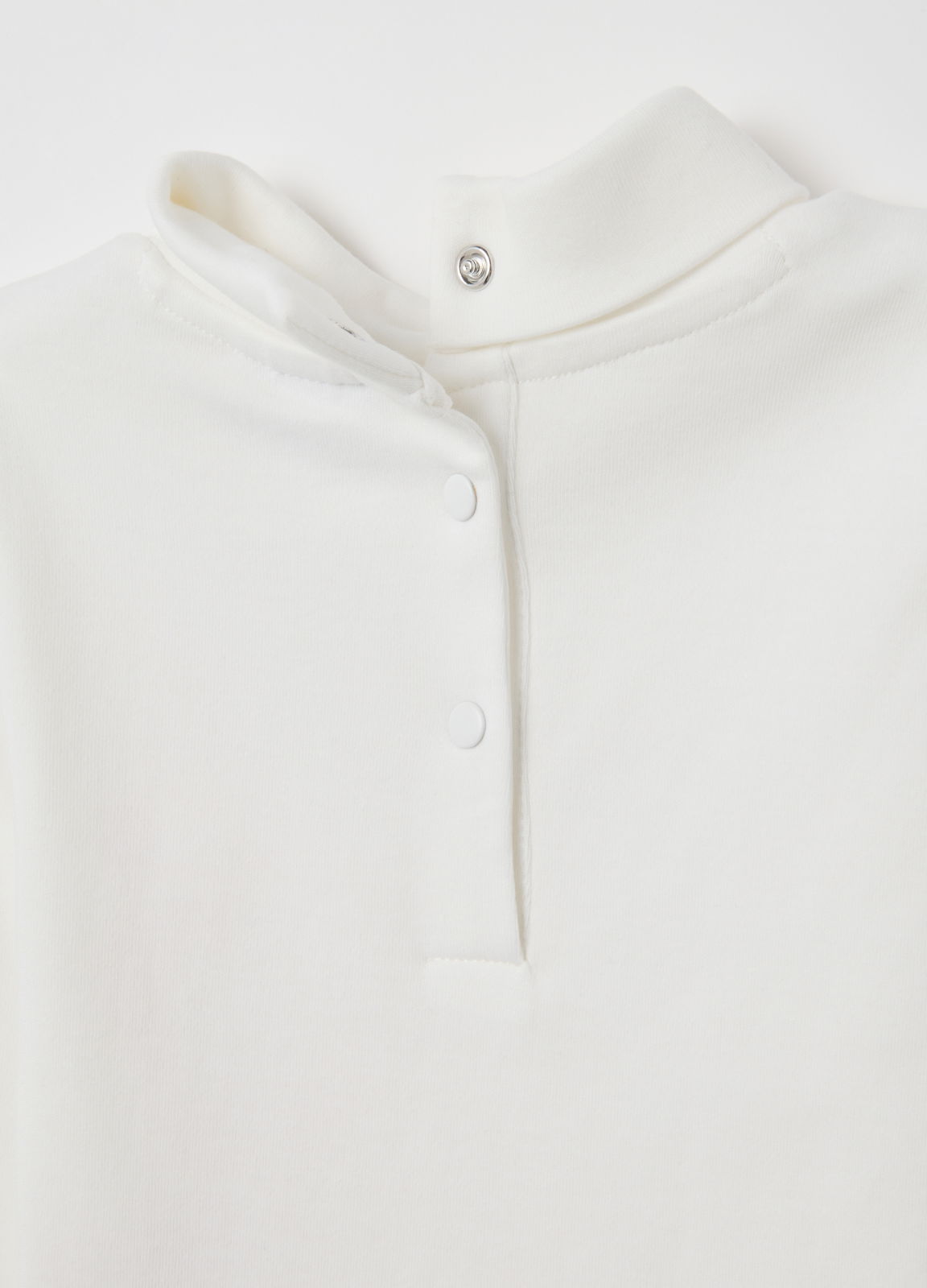 Характеристики: Футболка с длинными рукавами для девочек от 9 до 36 месяцев из чистого белого хлопка из линии Fagottino обеспечивает мягкость и комфорт. Модель с высоким воротом и прямым кроем идеально подходит для холодного сезона. Весёлые графические детали оживляют дизайн, а застёжка на пуговицы сзади облегчает одевание.