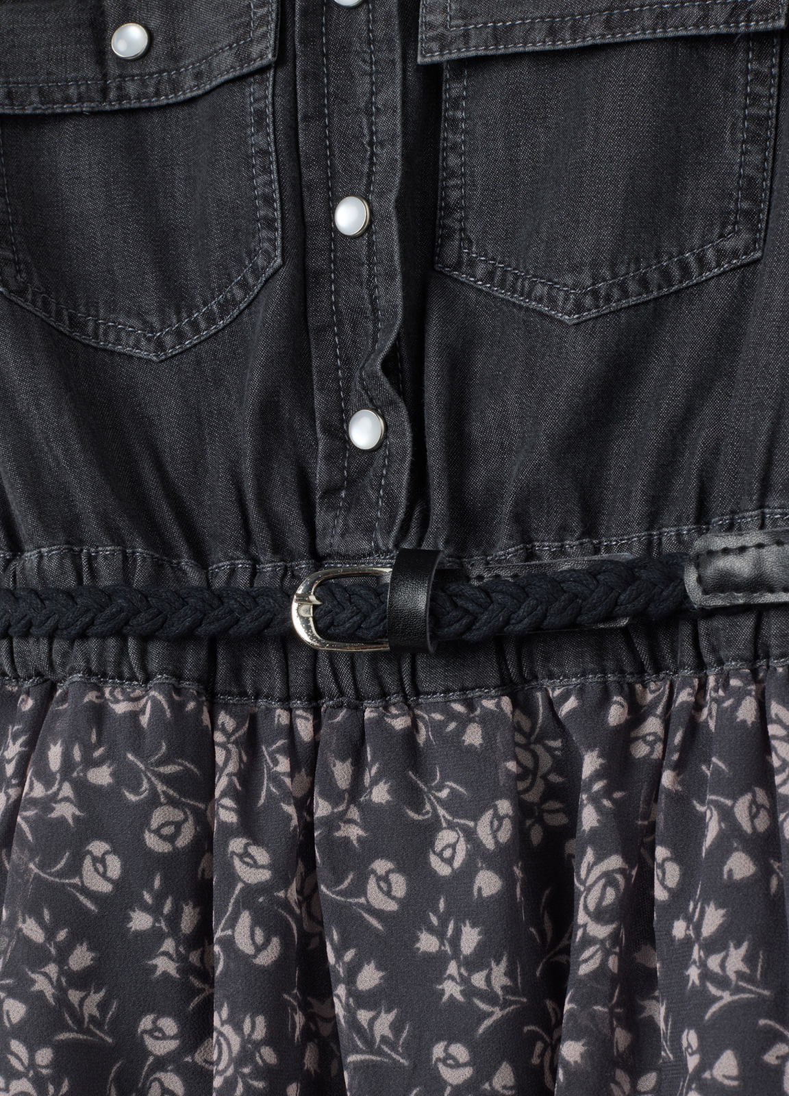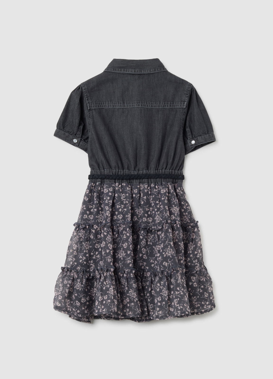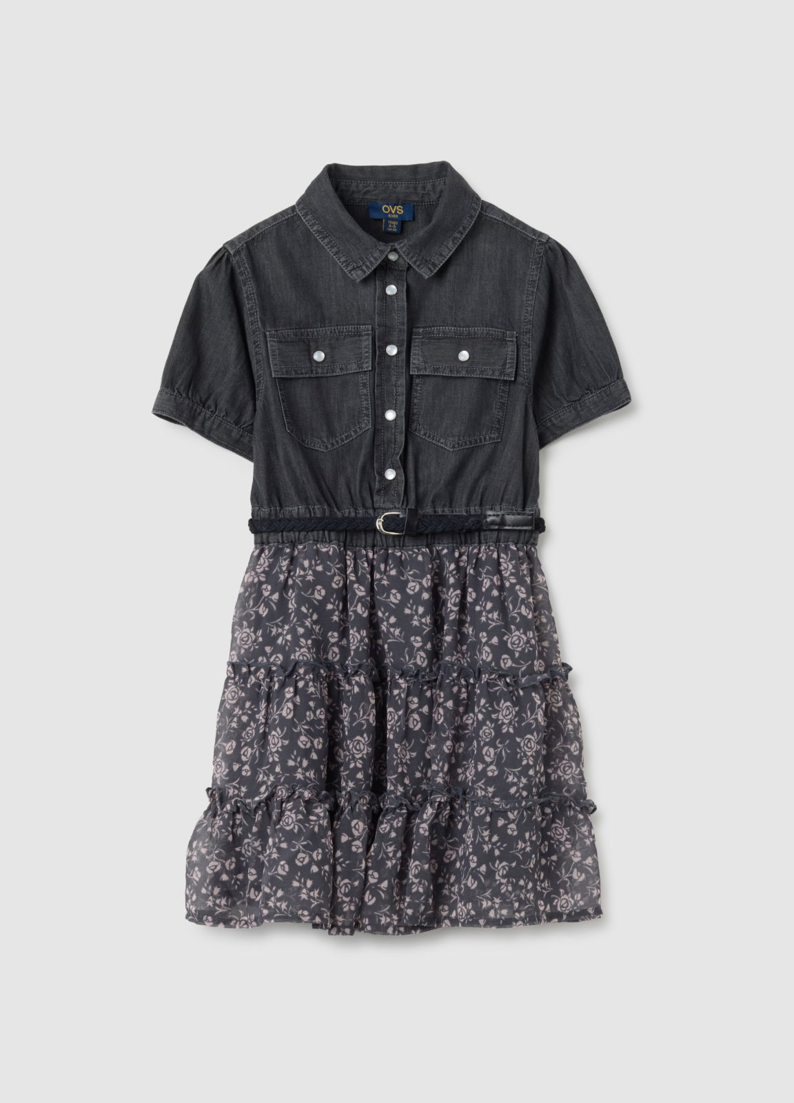 Характеристики: Платье для девочек от 3 до 10 лет из линии OVS Kids изготовлено из чистого хлопка. Верх выполнен из денима, юбка — с ярким цветочным узором. Короткие рукава и воротник на кнопках делают изделие практичным, а застежка на кнопках облегчает надевание. Плетеный пояс дополняет образ, идеально для прохладной осени.