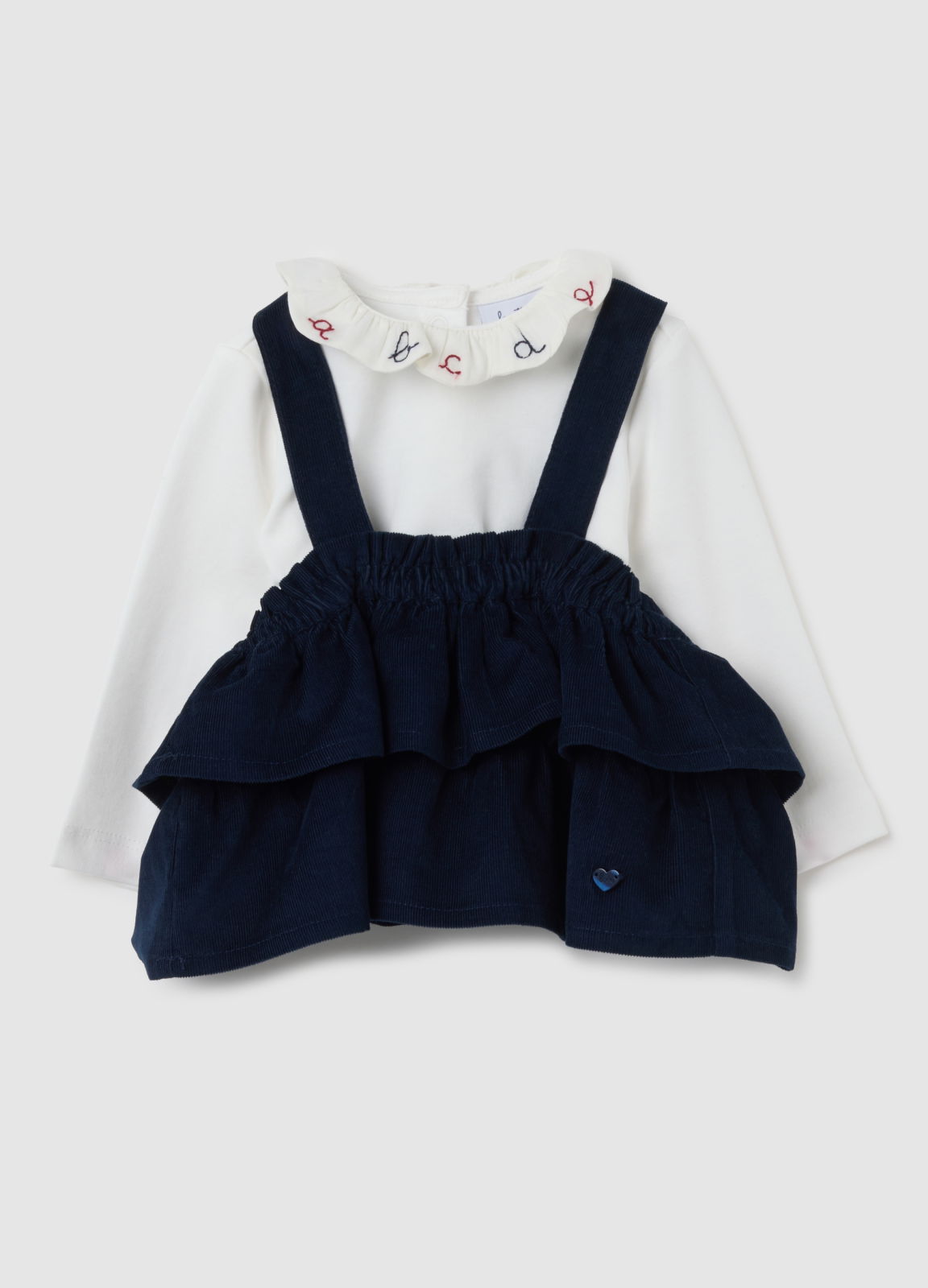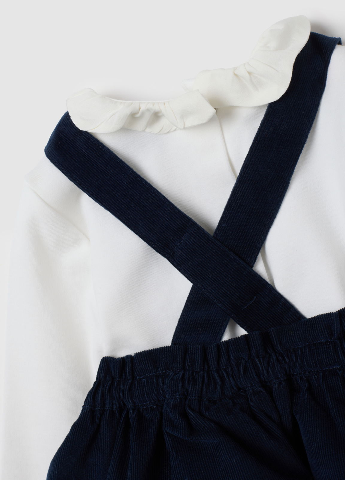 Характеристики: Этот комплект из линии Fagottino предназначен для девочек от 0 до 36 месяцев и выполнен из чистого хлопка, что обеспечивает мягкость и комфорт для нежной кожи. В набор входит белая рубашка с декоративным воротничком и синяя юбка на вельветовых подтяжках.