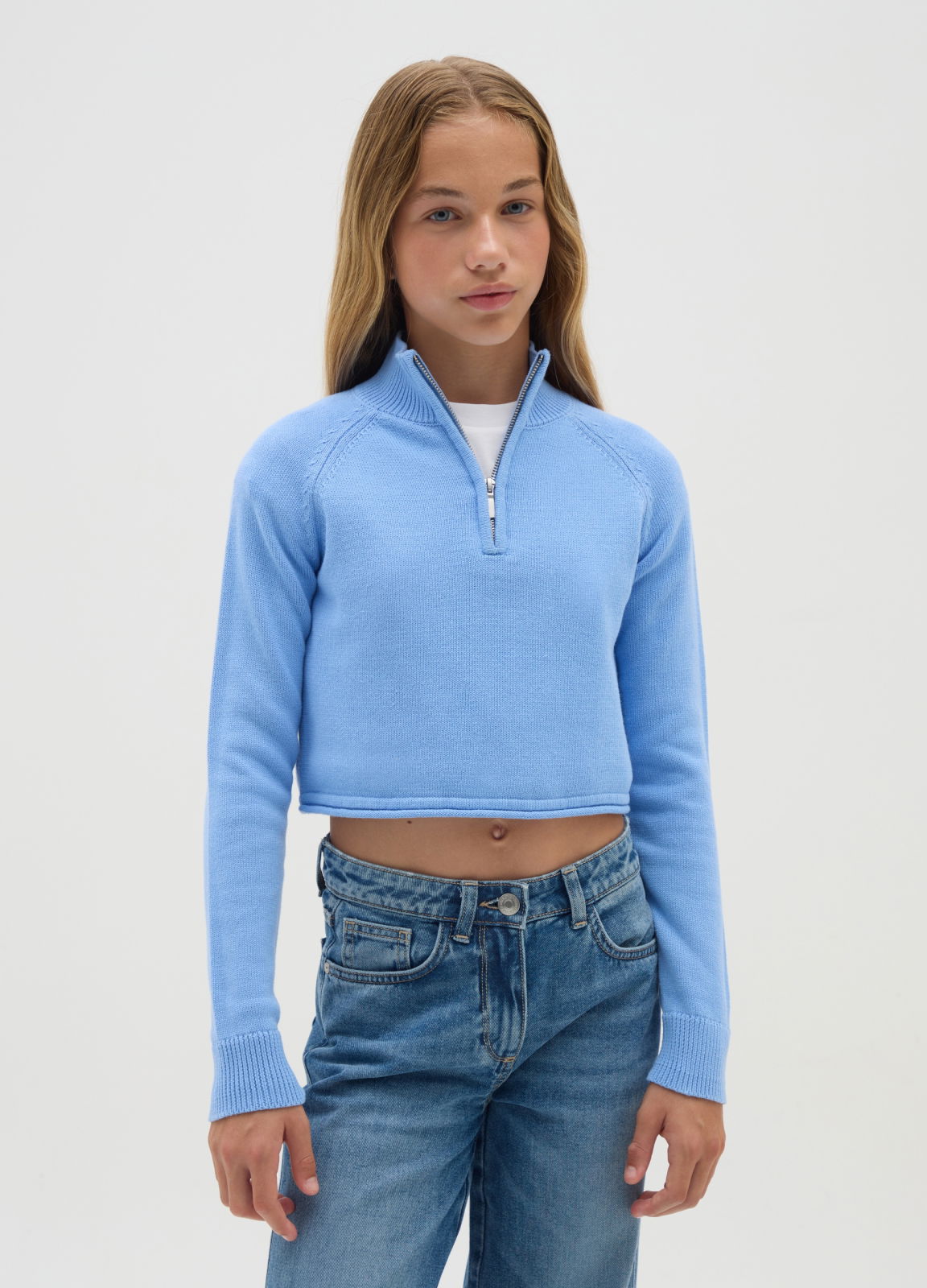 Характеристики: синий укороченный свитер для девочек от 10 до 15 лет из линии OVS Kids изготовлен из чистого хлопка, идеально для прохладных дней. оснащен длинными рукавами и высоким воротником с застежкой‑молнией, обеспечивая тепло и комфорт. зауженный крой делает его универсальным, подходящим для любого случая. практичная и удобная вещь.