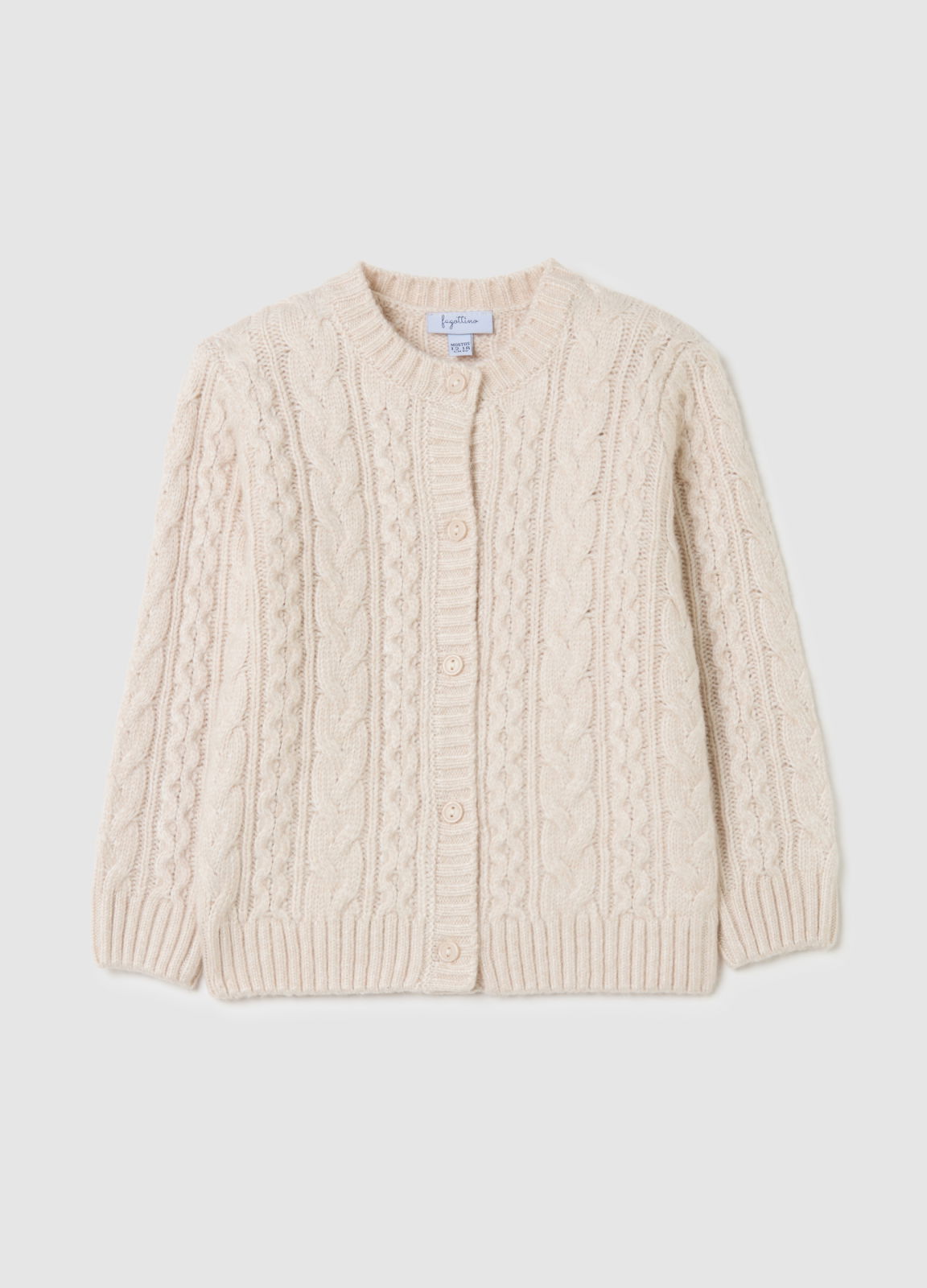 Характеристики: Бежевый кардиган из линии Fagottino предназначен для девочек от 9 до 36 месяцев. Вязаный дизайн с пуговицами и круглым вырезом облегчает одевание, обеспечивая практичность и комфорт для малышей. Идеально подходит для повседневных нарядов в осенне-зимний сезон.