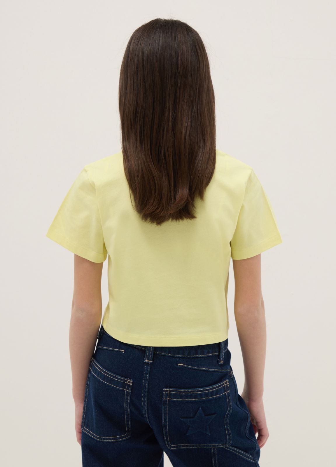 Тип продукта: Жёлтая футболка из чистого хлопка для девочек, стандартный крой, с принтом