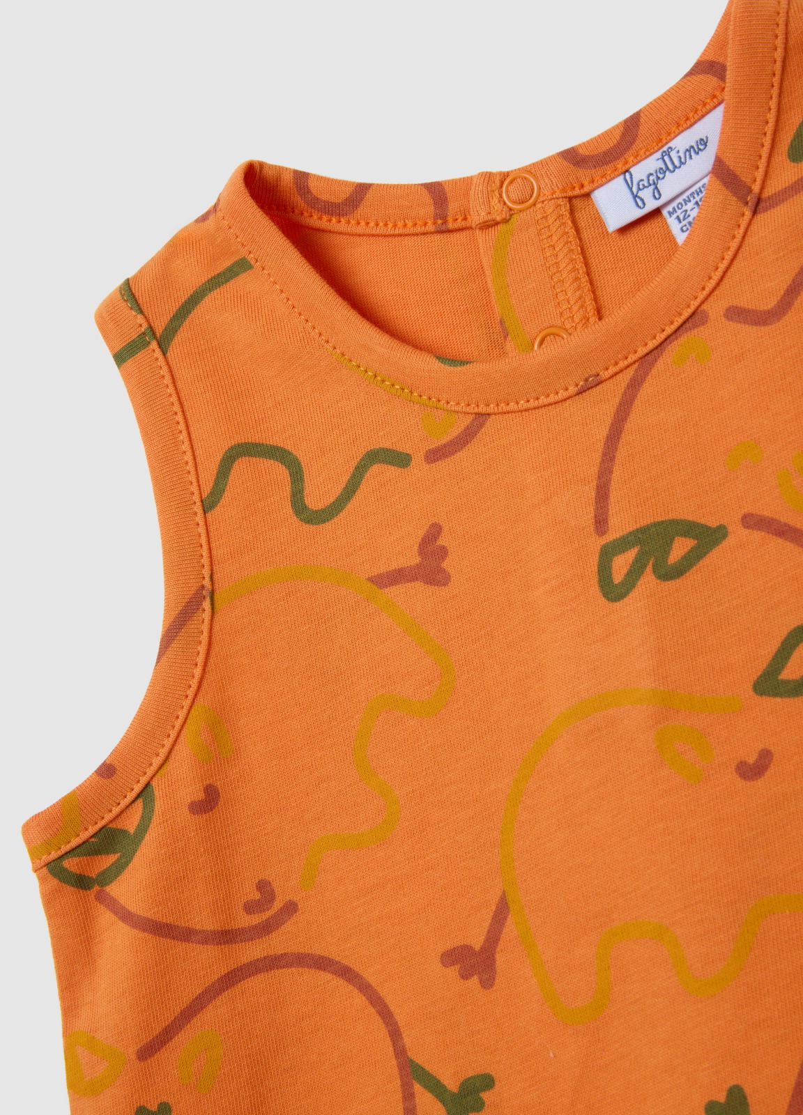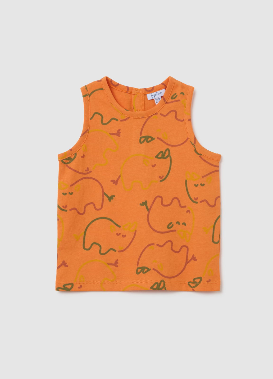Характеристики: Безрукавная многоцветная футболка от Fagottino для детей от 9 до 36 месяцев выполнена из чистого хлопка и украшена ярким принтом с изображением слона на оранжевом фоне, что делает её отличным выбором для яркого и оригинального образа летом. Застежка на спинке упрощает надевание, делая её удобной и практичной.
