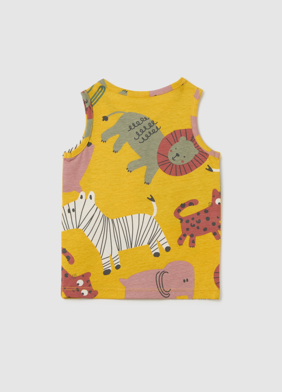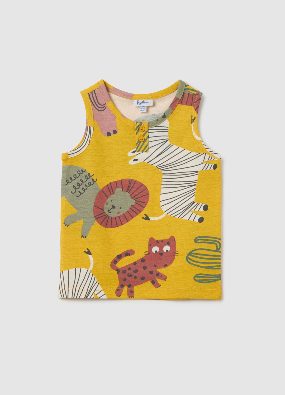 Характеристики: Эта желтая майка без рукавов из чистого хлопка от линии Fagottino предназначена для младенцев от 9 до 36 месяцев. Яркий принт с животными на желтом фоне идеально подходит для веселого и красочного образа. Круглый вырез декорирован декоративными пуговицами, которые добавляют стильный элемент, не нарушая простоту дизайна. Идеальный предмет для летних дней и игр на свежем воздухе.