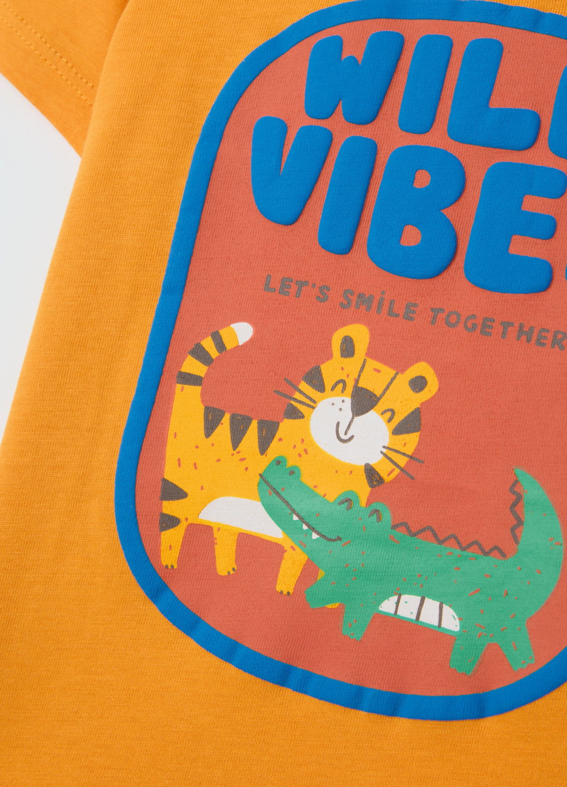 Тип продукта: Жёлтая детская футболка из чистого хлопка с обычным кроем и принтом