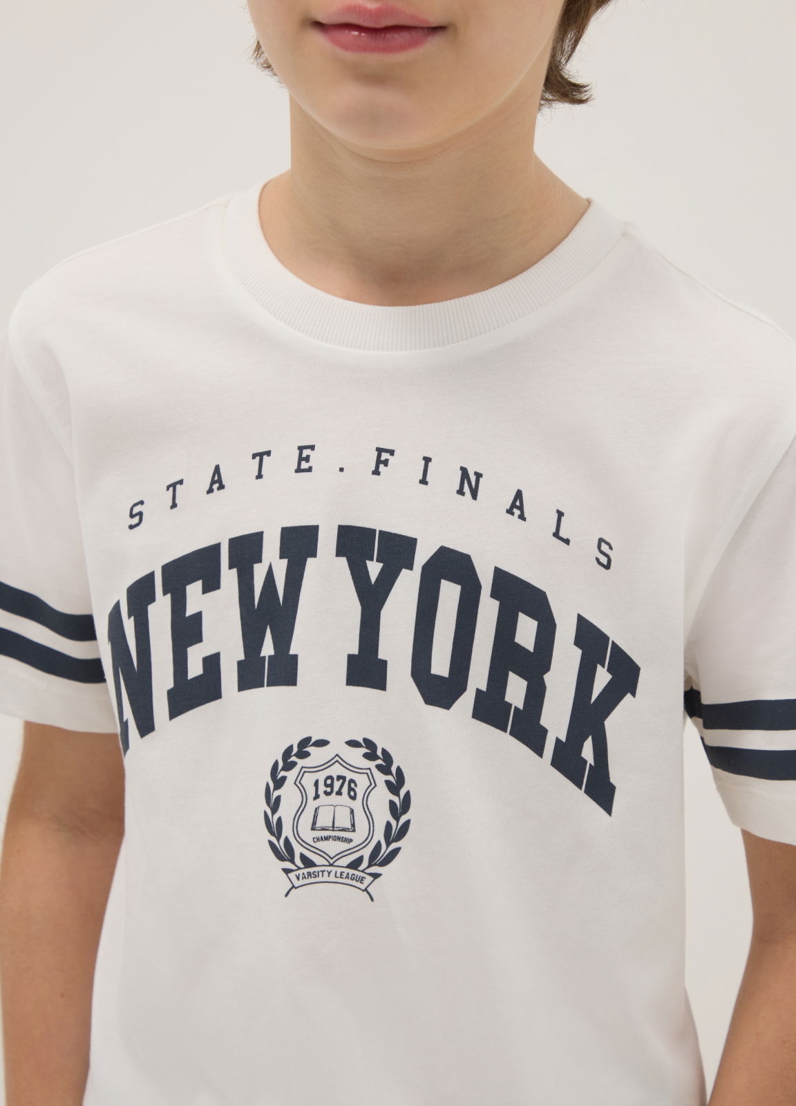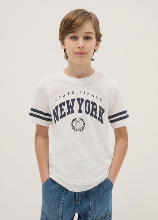 Тип продукта: Белая футболка из 100% хлопка для мальчиков, прямой крой, с принтом New York