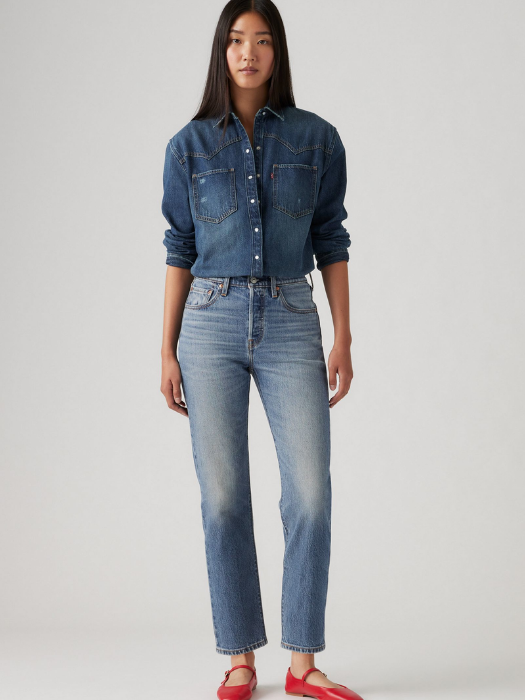 Blugi Albastri 501 CROP Straight Femei: 99% Bumbac, 1% Elastan