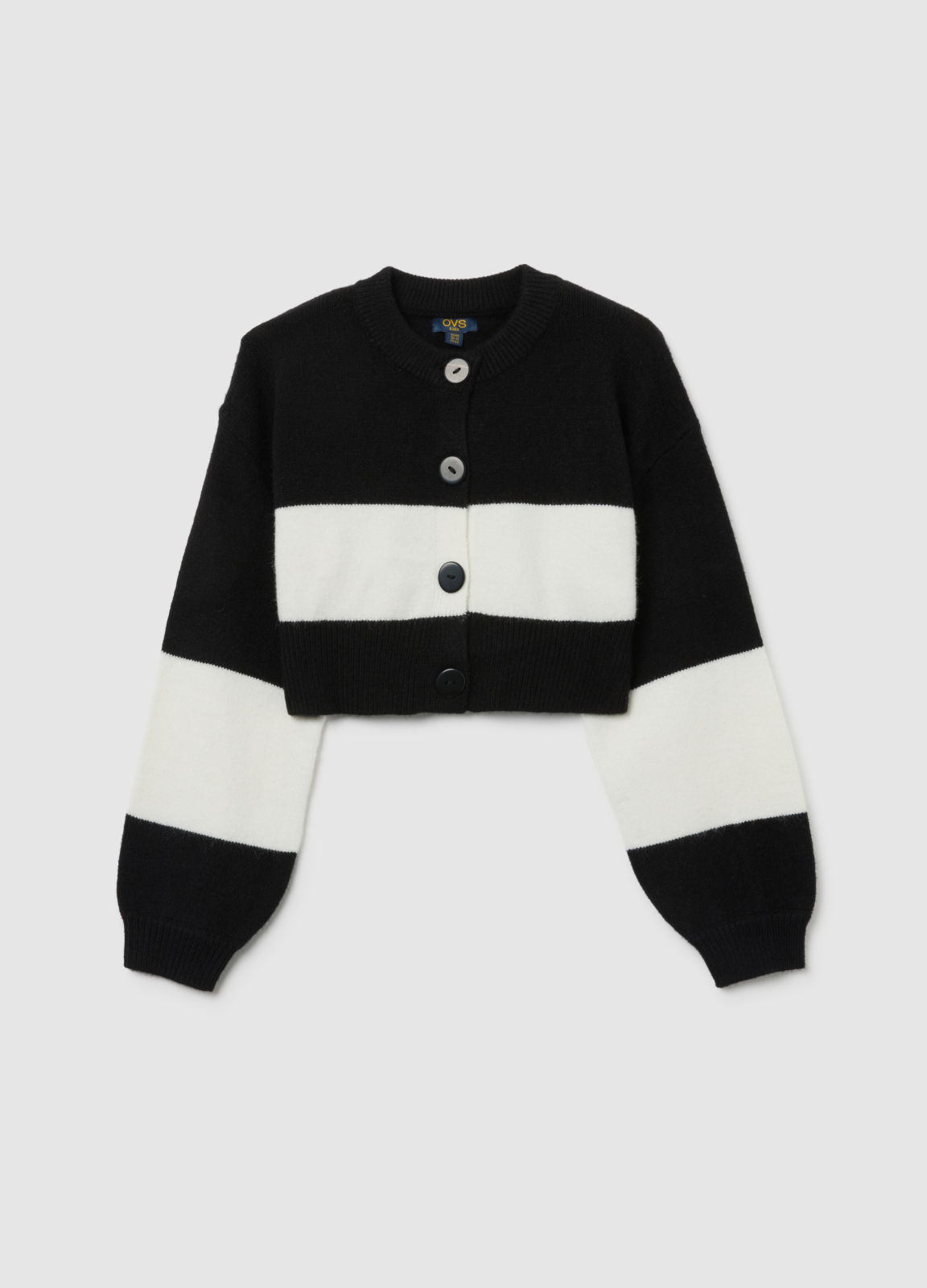 Tip Produs: Cardigan pentru fete, cu dungi alb-negru și nasturi