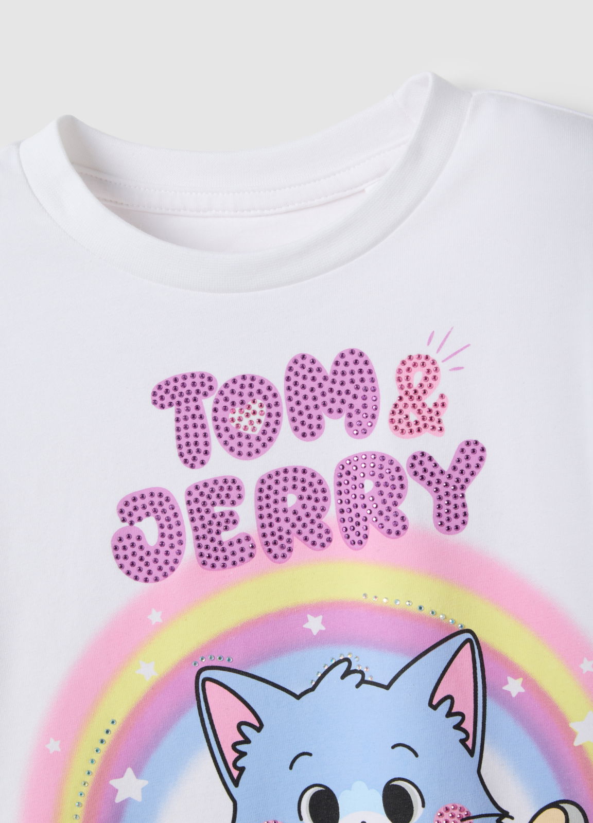 Caracteristici: Acest tricou alb pentru fete între 3 și 10 ani din gama OVS KIDS este confecționat din bumbac elastic, asigurând confort și libertate de mișcare în activitățile zilnice.Designul cu mânecă scurtă și guler rotund este completat de imprimeul amuzant cu Tom și Jerry, fiind ideal pentru zilele de vară.