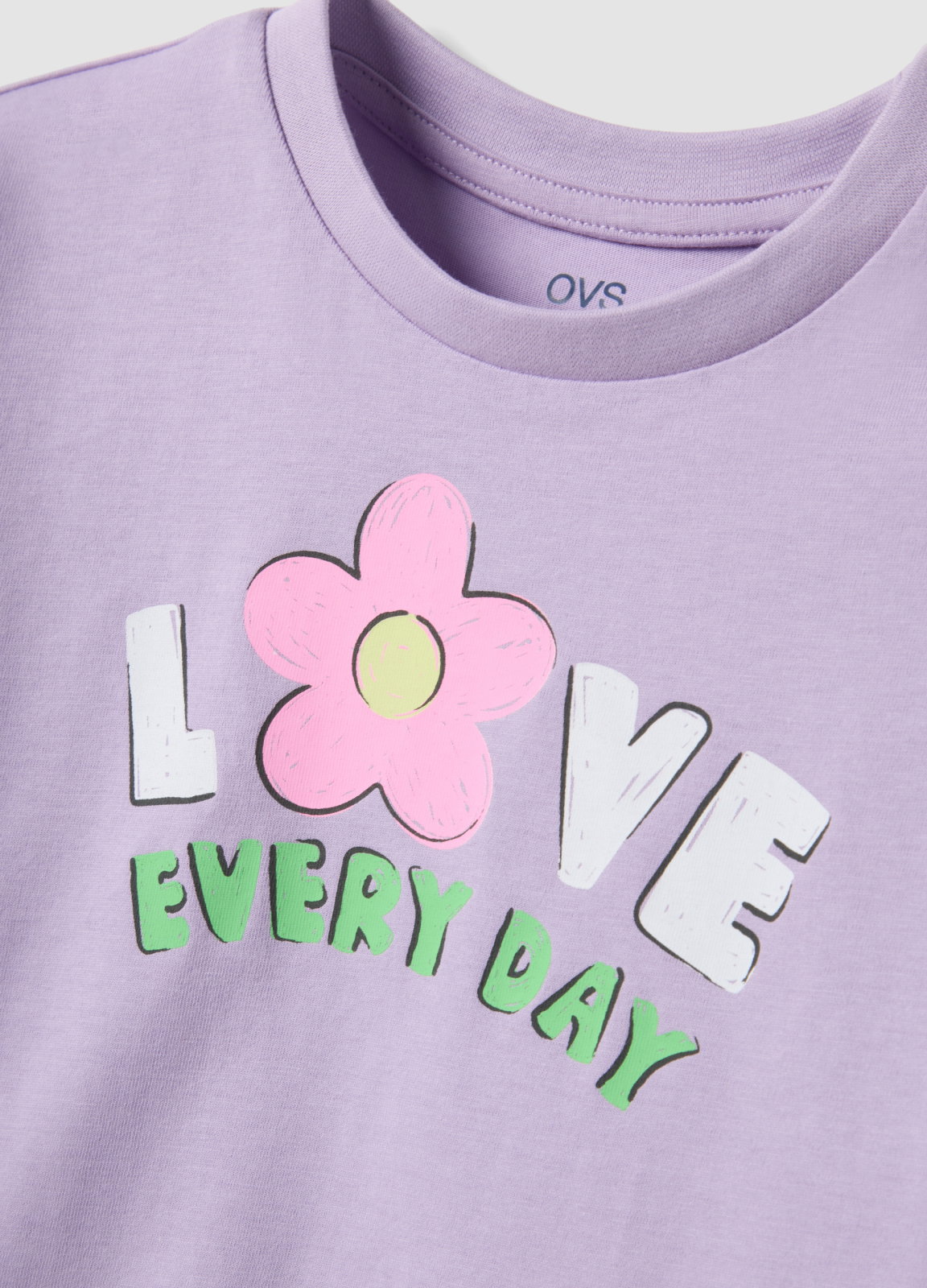 Caracteristici: Tricou mov din bumbac 100% de la colecția OVS, pentru fete între 3 și 10 ani. Gâtul rotund și mânecile scurte oferă confort și libertate de mișcare în zilele calde. Modelul floral din față adaugă o notă veselă ținutelor zilnice.