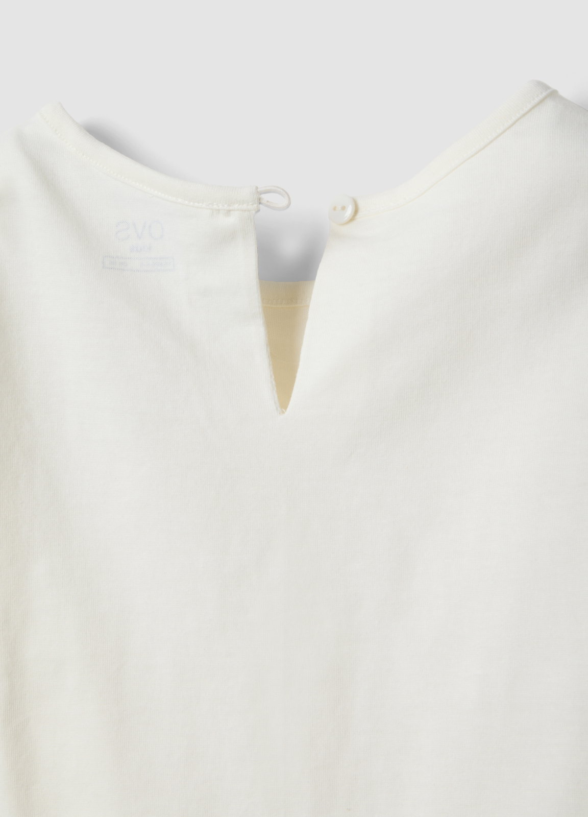 Caracteristici: Tricoul alb cu mânecă scurtă din linia OVS KIDS este fabricat din bumbac pur, asigurând confort și moliciune pentru fetele cu vârsta între 3 și 10 ani.Croiala cu guler rotund și potrivirea normală îl face ideal pentru vară.Închiderea cu nasturi la spate facilitează îmbrăcarea, oferind practicitate pentru utilizarea zilnică.Textura perforată cu broderie adaugă un plus de detaliu piesei vestimentare.