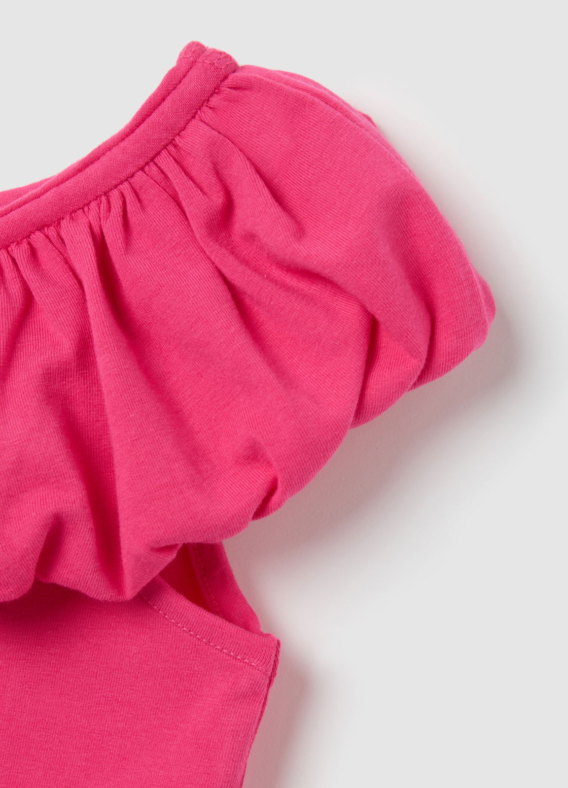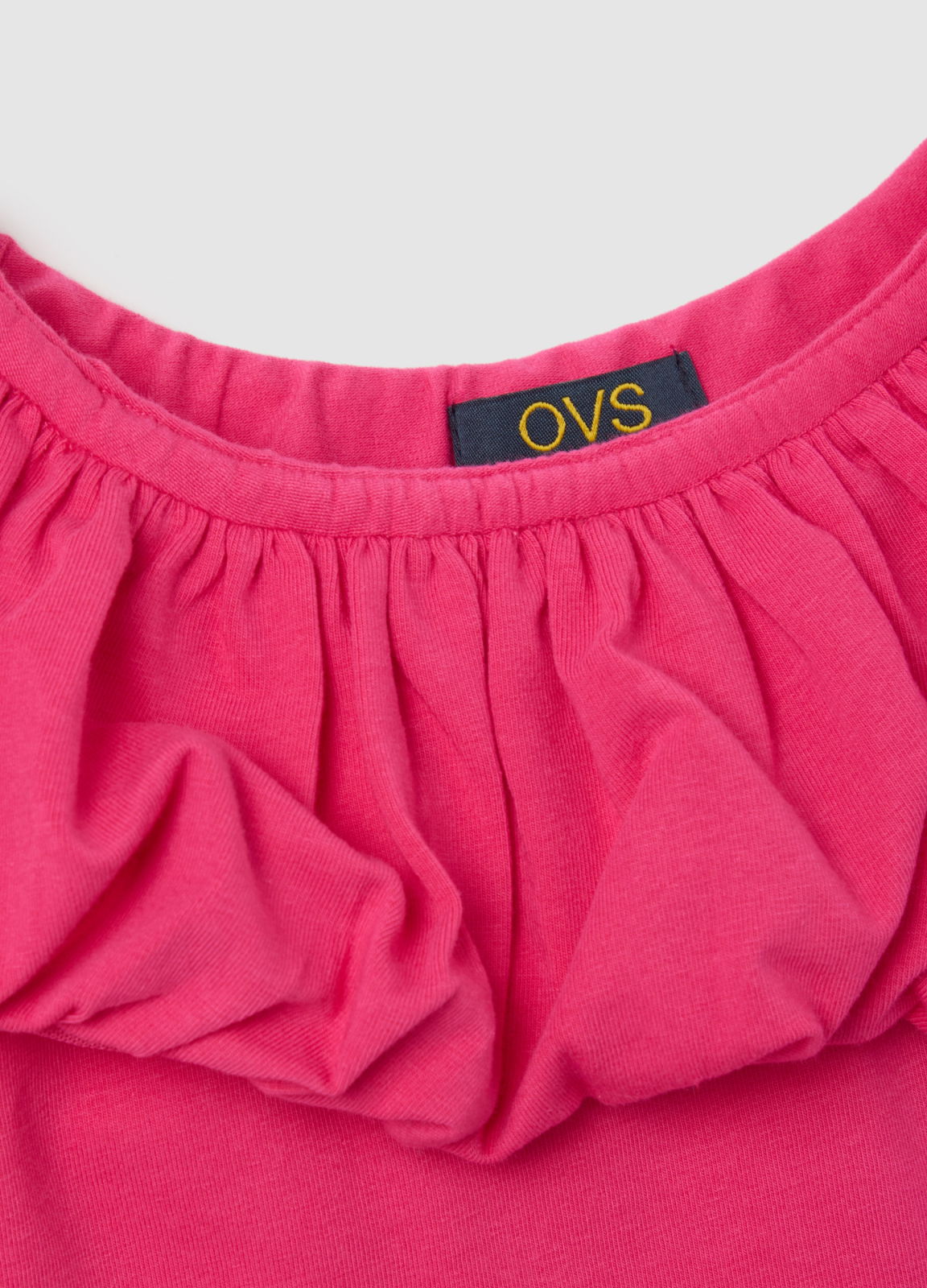 Caracteristici: Tricou roz cu mânecă scurtă OVS Kids. Realizat din bumbac elastic pentru un plus de confort. Decolteu rotund cu detalii adunate pentru un aspect viu și vesel.
