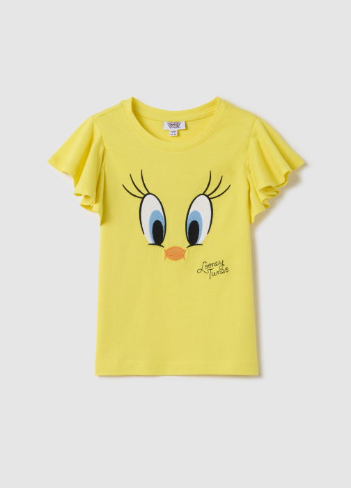 Tip Produs: Tricou galben din bumbac cu broderie Tweetie Pie
