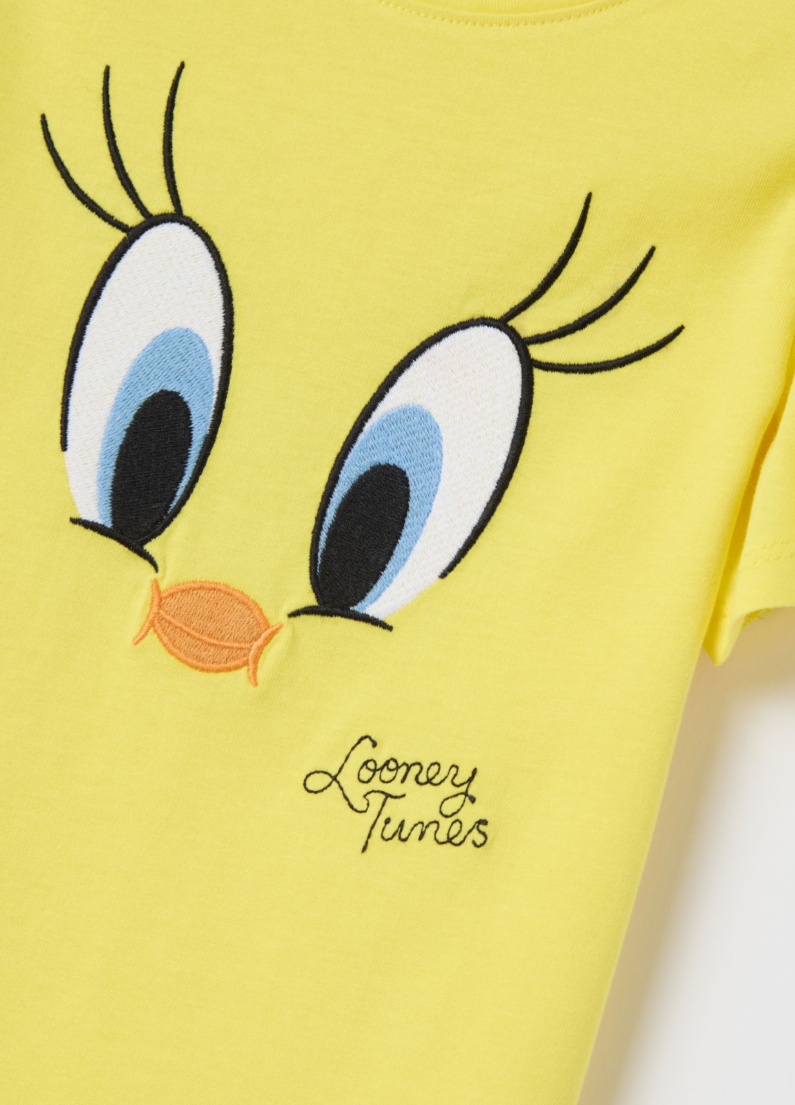 Caracteristici: Tricou OVS Kids din 100% bumbac. Guler rotund și mâneci scurte cu broderie Looney Tunes Tweetie Pie.
