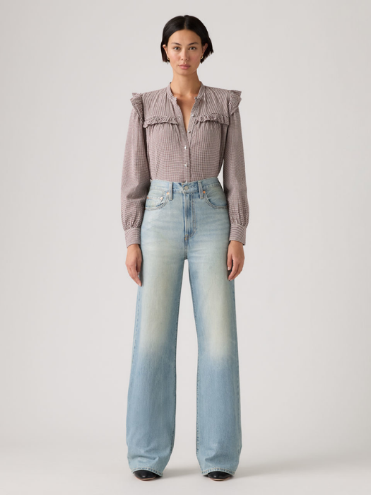 Levi's Blugi Albastri Ribcage Wide Leg Wide Leg Femei: 100% Bumbac